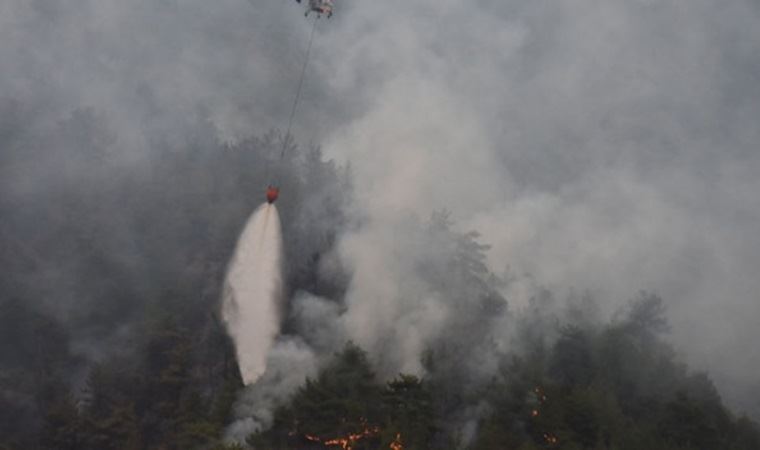 Gece saatlerinde kontrol altına alınan ve 70 hektar kızılçam ormanı ile orman bitki örtüsünün yandığı alanda, 2 helikopter ve 1 uçak ile soğutma çalışması yapılıyor.