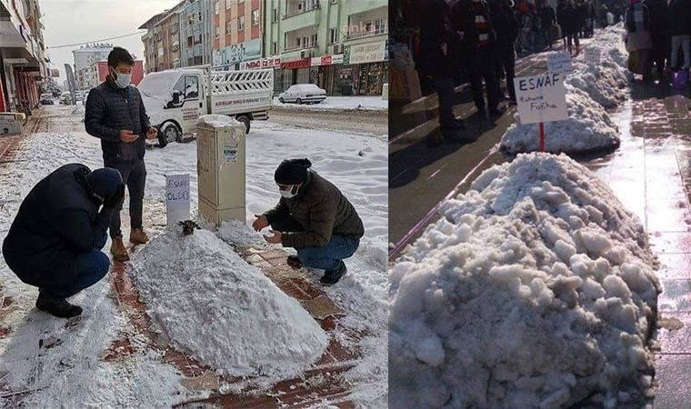 Sakarya ve Kahramanmaraş’taki esnaf, yaşadıkları ekonomik sıkıntılara dikkat etmek için kardan temsili bir mezar yaptı. Temsili mezar taşına ise “Esnaf öldü” yazısını astılar. Kısıtlamalar sebebiyle müşteri sayısı azalan, kira ve faturalarını ödemekte zorluk çeken esnaf, mezarların üzerine de çiçek yerleştirdi.