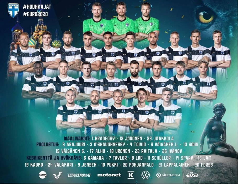 Kuzey Avrupa temsilcisi Finlandiya tarihinde ilk kez uluslararası bir organizasyona katılacak. Yıllardır kapısından döndükleri Avrupa Şampiyonası’na bu sefer katılmaya hak kazanan Finlandiya makus tarihine son verdi. 2017’de FIFA sıralamasında 110.’luğa kadar gerileyen Finler elemelerde İtalya, Yunanistan, Bosna Hersek, Ermenistan ve Lihtenştayn ile mücadele etti. Eleme gruplarında çıktığı 10 maçta 6 galibiyet 4 mağlubiyet alan Finlandiya grubu İtalya’nın ardından 2. sırada tamamlayarak EURO 2020’ye katılmaya hak kazandı.