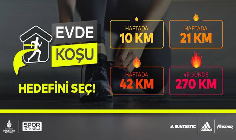 Evde Koşu ile koşuculara seçebilecekleri 3 haftalık hedef ve 1 adet de 45 günlük hedef sunuluyor. İsteyen haftada 42 km ile Evde Maraton hedefini ya da 21 km ile Evde Yarı Maraton hedefini tercih edebiliyor. Ayrıca Spor İstanbul’un Ramazan ayı için önerdiği haftada 10 km ile Ramazan Yürüyüşleri de seçenekler arasında. Daha uzun hedef isteyen koşucular içinse 270 kilometrelik, İstanbul’u bir ucundan diğer ucuna koşarmışçasına sunulan İstanbul’u Koşuyorum hedefi bulunuyor.