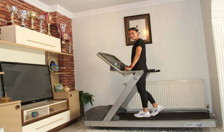 Milli atlet Tuğba Güvenç, olimpiyatlara evden hazırlanıyor.