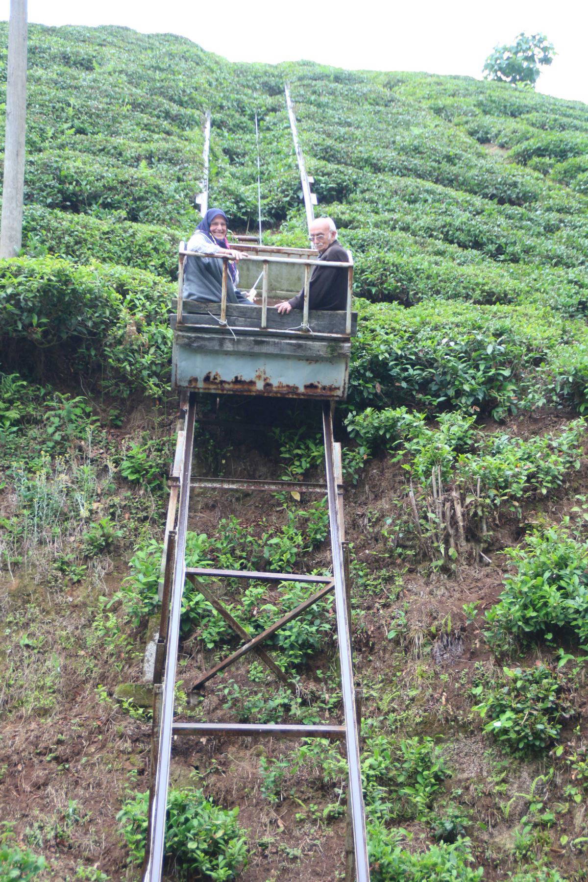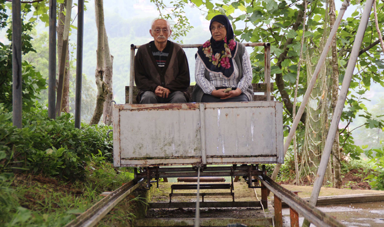 Çiftin komşusu Yaşar Güveli de, “Bana çok ilginç geldi. Bizim havadan giden varangel dediğimiz teleferiklerin bu da yerden gideni. Ben de bazen çay taşımak için kullanıyorum” ifadesini kullandı.