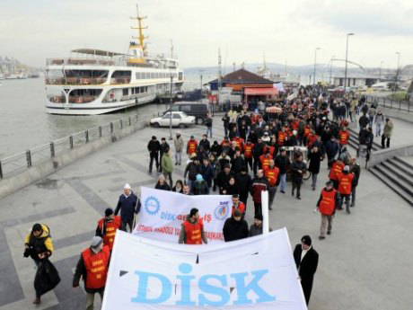 Bazı kamu çalışanlarının da vapurla Eminönü'ne geçmesi ile sayıları bini aşan grup, Saraçhane'ye yürümeye başlarken, güvenlik güçlerinin yoğun tedbir aldı. Slogan atan bir grup eylemcinin ise yürüyüş sırasında Unkapanı'ndaki TEKEL önünde yolu trafiğe kapatması, polis ve grup arasında arbede yaşanmasına neden oldu.