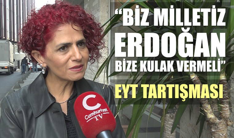 EYT yani emeklilikte yaşa takılanlar, bir süredir gündemden düşmüyor. Son olarak danışmanına konuyla ilgili çalışma yapması için talimat veren Cumhurbaşkanı Recep Tayyip Erdoğan, kapıyı iyice kapattı. Cumhurbaşkanı Erdoğan erken emeklilik tartışmaları ile ilgili olarak, “İskandinav ülkelerinin hepsi bu sistemle battı. Biz bunu politik hesaplarla yapmayız, yapmayacağız da. Arkadaşlarıma söylüyorum. Benim bu yola asla teşvik etmeyin. Milletimiz faydası neredeyse ona varım, milletimi ülkeni zararın olan şeye asla yokum. Seçim kaybetsek de yokum” dedi. Cumhurbaşkanı Erdoğan'ın emeklilikte yaşa takılanlar EYT sözlerine Emeklilikte Yaşa Takılanlar Sosyal Yardımlaşma ve Dayanışma Derneği (EYT-SYDD) Başkanı Gönül Boran Özüpak, tepki gösterdi. Özüpak “Biz milletiz bize kulak vermesi gerekiyor” dedi.