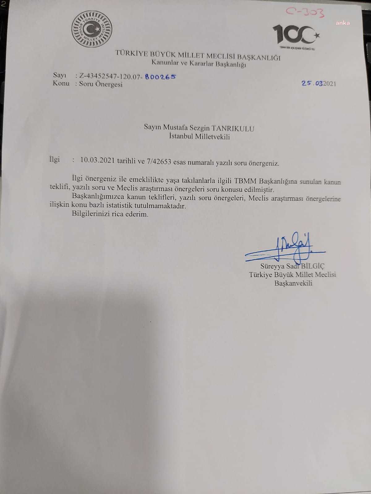 CHP İstanbul Milletvekili Sezgin Tanrıkulu, EYT’li yurttaşlarla ilgili TBMM’ye kaç kanun teklifi ve kaç soru önergesi verildiğini, bunları hangi partilerden, hangi milletvekillerinin verdiğini TBMM Başkanı Mustafa Şentop’a sordu. Tanrıkulu’nun soru önergesiyle cevabını aradığı bu soruları TBMM Başkanvekili Süreyya Sadi Bilgiç yanıt verdi. Bilgiç, “Başkanlığımızca kanun teklifleri, yazılı soru önergeleri, Meclis araştırma önergelerine ilişkin konu bazlı istatistik tutulmamaktadır” dedi.