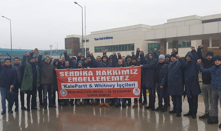 İzmir Gaziemir Ege Serbest Bölge’de bulunan ve F-35 savaş uçaklarının motor parçalarının üretildiği Türk Kale Grubu ile Amerikan Pratt&Whitney ortaklığında kurulan uçak motor sanayi fabrikasında, sendikalaşan 94 işçi dün işten çıkarıldı. Ayrıca şirket yöneticilerinin geri kalan 356 işçiden e-devlet şifresini istediğini ve bunu vermek istemeyen işçileri de işten atmakla tehdit ettiği iddia edildi. Bu olay öncesi fabrikada toplam 450 işçinin çalıştığı belirtilirken, çalışan sayısının yarı yarıya azaltılacağı söyleniyor.