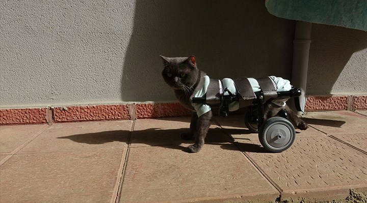 Felçli ya da yürüyemeyen kedi ve köpekler için çeşitli malzemeler kullanarak yürüteçler yapan Çelik, yaklaşık iki yıldır 38 engelli hayvanı "ayağa kaldırmayı" başardı.