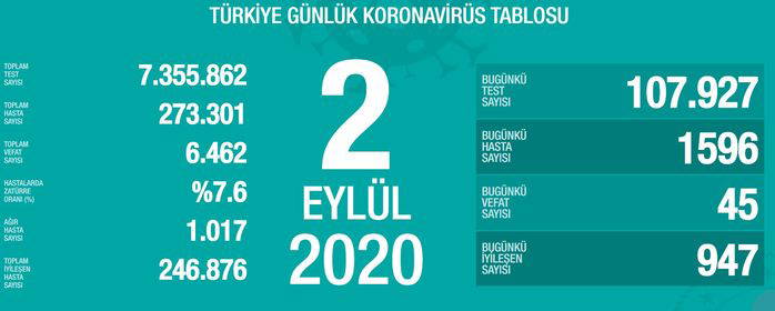 Koca, 45 yurttaşın daha koronavirüs salgını nedeniyle yaşamını yitirdiğini ve testi pozitif çıkan bin 596 yeni vakanın, ağır hasta sayımız bin 17'' olarak açıkladı.