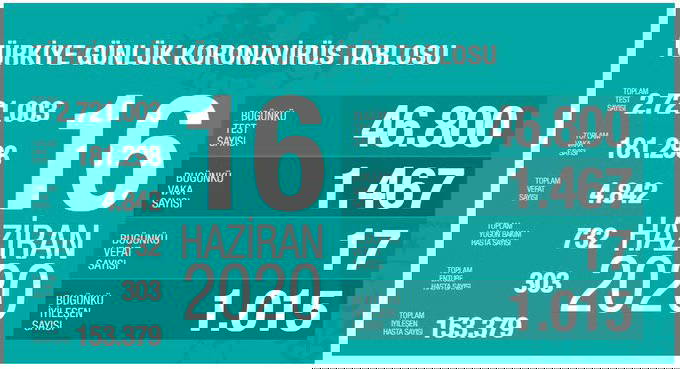 Türkiye'nin 16 Haziran 2020 koronavirüs tablosu şöyle: