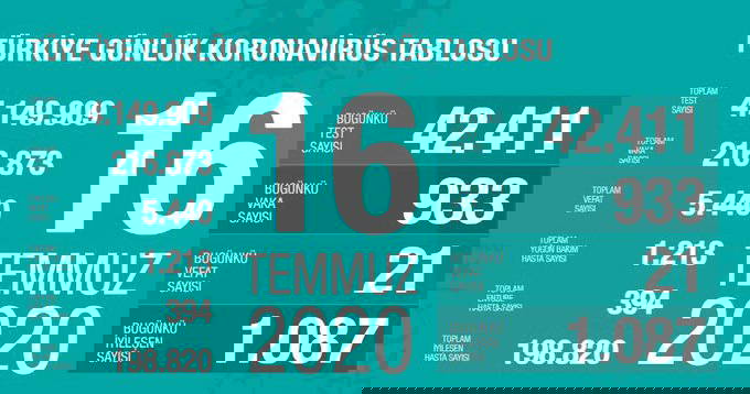 Türkiye'nin günlük koronavirüs tablosu şöyle: