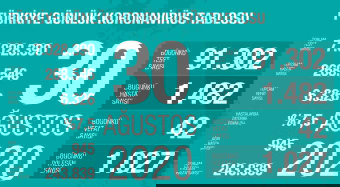 Türkiye'nin 30 Ağustos 2020 koronavirüs tablosu şöyle: