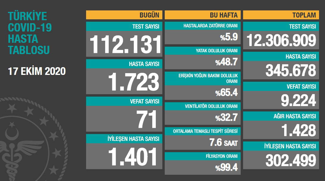 17 EKİM TÜRKİYE KORONAVİRÜS TABLOSU