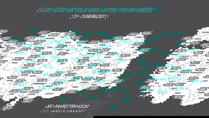Sağlık Bakanı Fahrettin Koca, illere göre haftalık vaka oranlarını açıkladı.