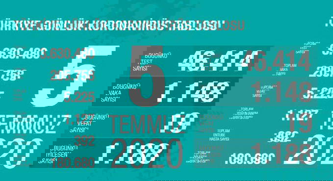 Türkiye'nin 5 Temmuz 2020 koronavirüs tablosu şöyle:
