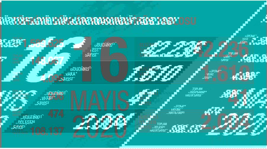 Sağlık Bakanı Fahrettin Koca'nın açıkladığı yeni verilere göre Türkiye'de yaşamını yitirenlerin sayısı 4 bin 96 oldu. Ülkedeki koronavirüs vaka sayısı ise son 24 saatte bin 610 artarak 148 bin 67'yi buldu.
