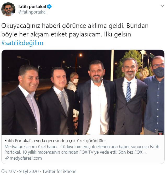 Portakal, sosyal medya hesabından FOX TV'den ayrılmak için 10 milyon dolar aldığı iddialarına yanıt verdiği haberi alıntılayarak şu ifadeleri kullandı: