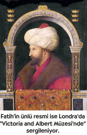Fatih’in ünlü resmi ise Londra’da “Victoria and Albert Müzesi’nde” sergileniyor. Bellini’nin “Fatih tablosu”, en önemli yapıtlarından biridir. Tablonun sağ alt köşesinde, Latin harfleriyle “25 Kasım 1480” tarihi görülür...