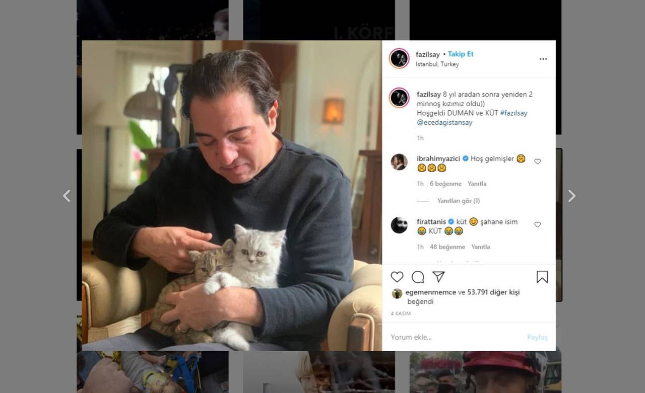 Piyanist Fazıl Say ve piyanist Ece Dağıstan Say, Küt ve Duman isimli iki yavru kedi sahiplendi.