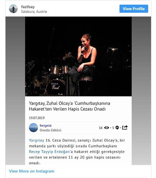 Olcay’a destek mesajı paylaşan Fazıl Say, şunları yazdı: