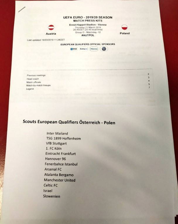 Sarı-Lacivertli kulübün scout ekibi EURO 2020 elemelerinde oynanacak olan Avusturya-Polonya karşılaşmasını yakından takip edecek.