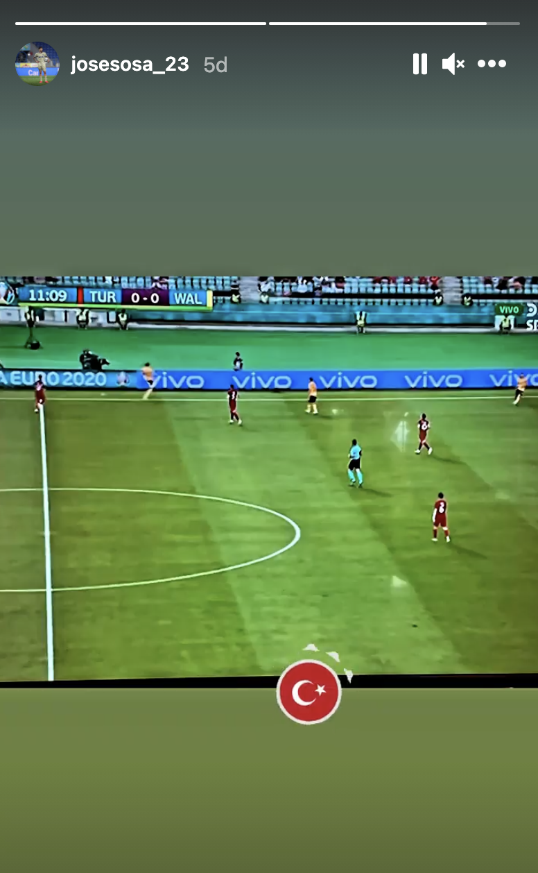Fenerbahçeli futbolcu Jose Ernesto Sosa, EURO 2020 (Avrupa Futbol Şampiyonası) A Grubu'ndaki ikinci maçında Galler ile kozlarını paylaşan A Milli Futbol Takımı'na sosyal medyadan destek verdi.