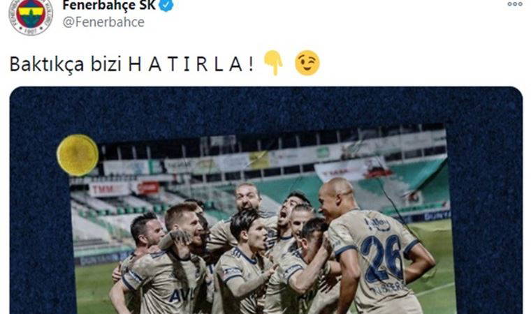Fenerbahçe, Süper Lig'in 11. haftasında deplasmanda konuk olduğu Denizlispor'u 2-0 mağlup etti. Denizli'de maçın bitmesinin ardından Fenerbahçe sosyal medya hesabından Denizlispor paylaşımı yaptı. Ege ekibinin geçtiğimiz günlerde yaptığı paylaşıma gönderme yapan sarı lacivertli takım, "Baktıkça bizi hatırla" ifadelerini kullandı. Geçtiğimiz günlerde Denizlispor, o maçtan bir görüntü paylaşarak '#Hatırla' etiketini kullanmış ve Fenerbahçe taraftarlarının tepkisini çekmişti.