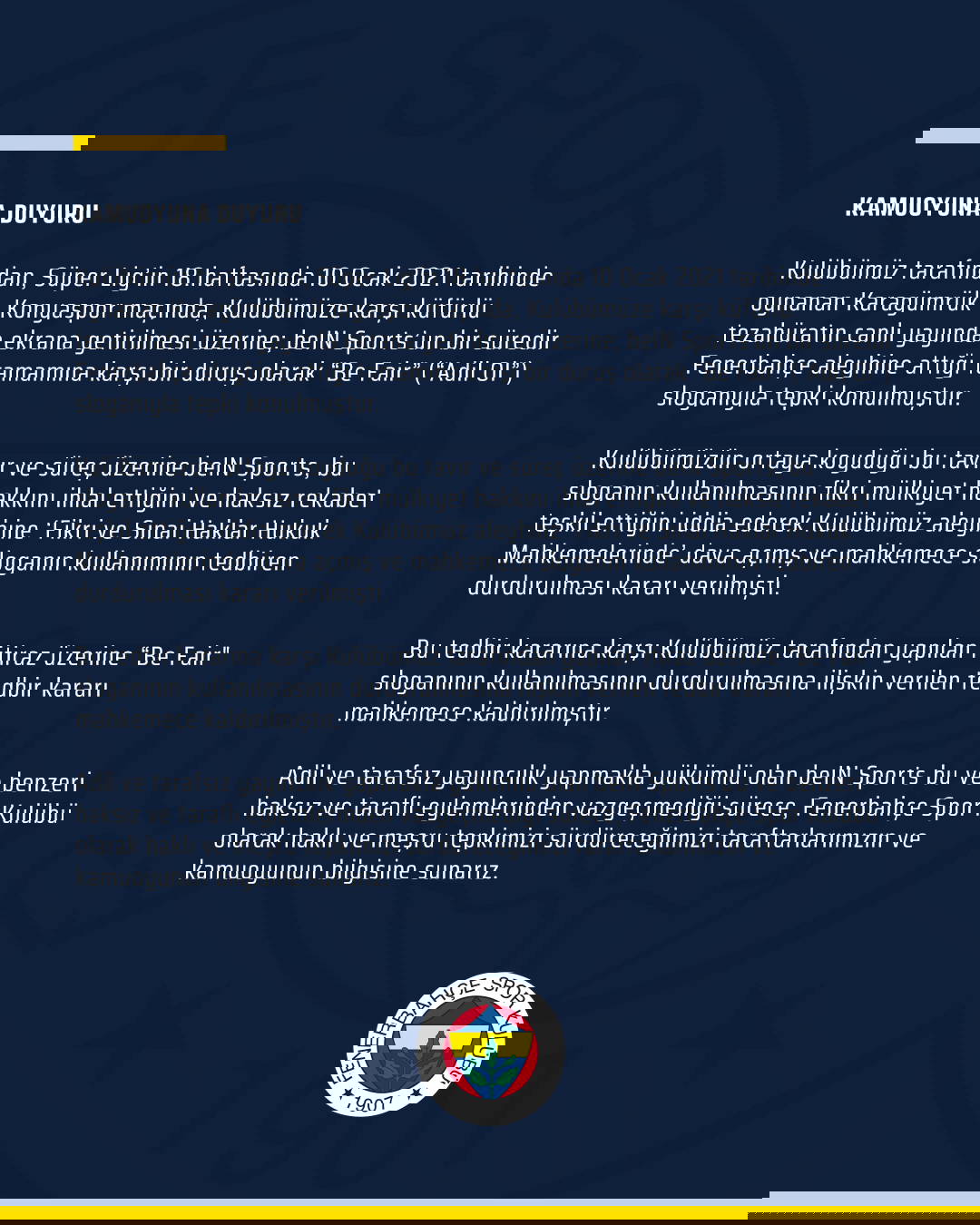 Fenerbahçe Spor Kulübü twitter üzerinden yayınladığı mesajla beIN'e yine tepki gösterdi.