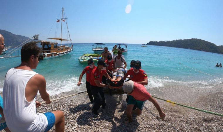 Şahin'in düştüğünü görenlerin yardım istemese üzerine Ölüdeniz’de konuşlu Jandarma Arama Kurtarma (JAK) timi, botla yaralıya ulaştı.