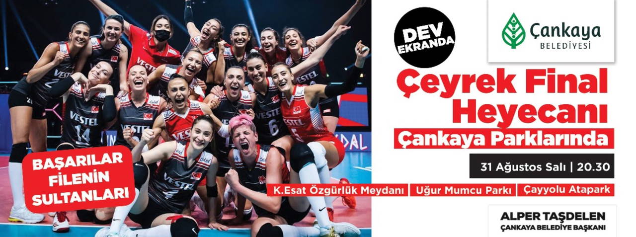 Sosyal medya hesabından Çankayalılara seslenen Çankaya Belediye Başkanı Alper Taşdelen, "Filenin Sultanları için tek yürek olacağız! 31 Ağustos Salı günü saat 20.30’da A Milli Kadın Voleybol Takımımızın Polonya Kadın Milli Voleybol Takımına karşı vereceği mücadeleyi Çayyolu Atapark, Uğur Mumcu Parkı ve Esat Özgürlük Meydanımızda kuracağımız 3 dev ekranda izlemeye tüm Çankayalıları davet ediyorum” dedi.