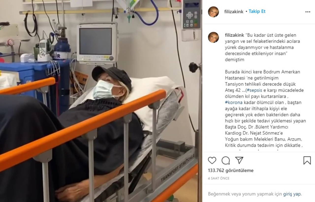 Midesine tüp takıldığını da ifade eden Filiz Akın, serumla tedavisine bir süre evde devam edileceğini de açıkladı. Takipçilerinden Akın'a çok sayıda "Geçmiş olsun." mesajları yağdı.