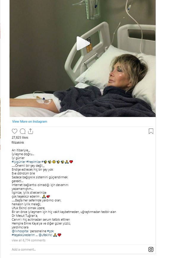 Bağışıklık sistemini güçlendirmek için serum tedavisi gören Akın, "Endişe edilecek hiçbir şey yok, eve döndüm bile. Sadece bağışıklık sistemini güçlendirmek gerekti. İlginize, iyilik dileklerinize çok teşekkür ederim" ifadelerini kullandı.