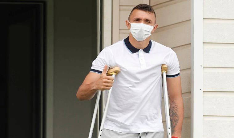 Çaykur Rizespor maçında rakibiyle çarpışması sonucu kaval kemiğinde kırıklar oluşan ve geçirdiği başarılı ameliyatın ardından dün hastaneden taburcu edilen kaleci Fernando Muslera, tesislere gelerek antrenmanı izledi.