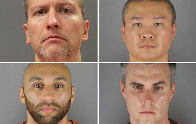 Floyd davasında cinayetle suçlanan polisler (üst sıra soldan sağa): Derek Chauvin, Tou Thao, (alt sıra soldan sağa) J. Alexander Kueng ve Thomas Lane.