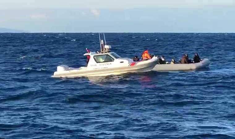 Bölgeye sevk edilen ekiplerce durdurulan lastik botta bulunan 8 Kongo, 7 Gine, 5 Suriye, 4 Orta Afrika Cumhuriyeti, 3 Somali, 1 Filistin, 1 Senegal ve 1 Afganistan uyruklu 30 düzensiz göçmen yakalandı.