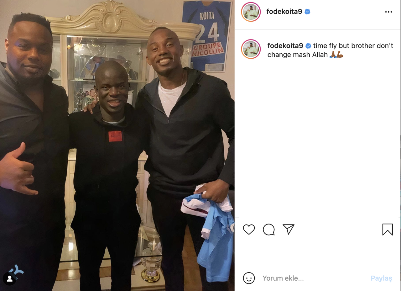 Trabzonspor'un yeni transferi Fode Koita, Chelsea'nin Fransız yıldızı N'Golo Kante ile bir araya geldi.