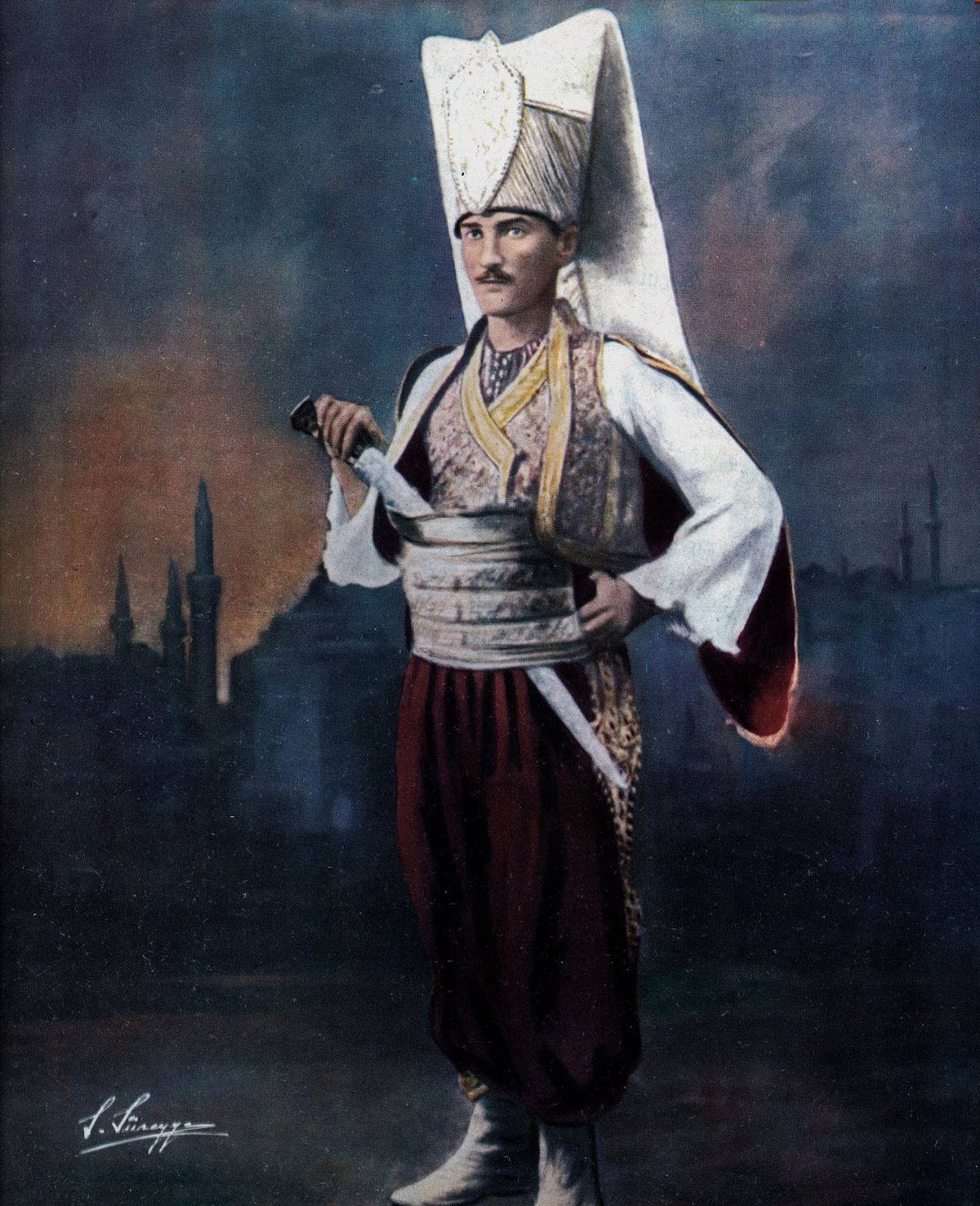 Atatürk’ün yeniçeri kıyafetli fotoğrafını görmemiş olan yoktur. Yarbay Mustafa Kemal, Mayıs 1914’te Sofya’da ataşe militer. Bulgarların milli günlerinde herkesin milli kıyafetiyle katılmasının istendiği bir baloya davet ediliyor. İstanbul’dan müzeden bir yeniçeri kıyafeti gönderilmesini sağlıyor. Kıyafeti aksesuvarlarıyla birlikte giyinip kuşanarak baloya gidiyor, herkes bu albenili askere hayranlıkla bakarken Bulgar Kralı Ferdinand’ın bile ilgisini çekiyor. Kral, kendisini yanına çağırıp kutluyor ve gümüş bir tabaka armağan ediyor. Mustafa Kemal’in bu kıyafeti birinci seçilmekle kalmıyor, baloda Bulgar başbakanının kızıyla yaptığı danslarla da dans yarışmasında ödül kazanıyor! Fotoğrafı ise kendisini evine davet eden İspanya Maslahatgüzarı çekiyor ve fotoğraf yıllar sonra “Foto Süreyya” tarafından renklendiriliyor.
