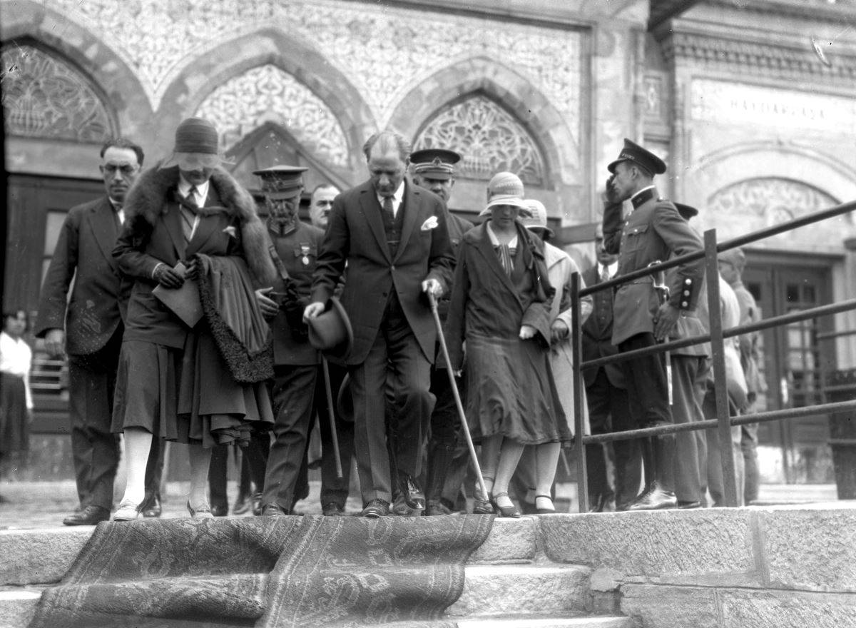 Atatürk, kırgın olduğu İstanbul’a uzun yıllar gelmez. Geldiği zaman da hep Haydarpaşa’yı ve sonda denizyolunu tercih eder. Haydarpaşa Garı’ndan çıkmış, kendisini bekleyen Söğütlü Yatı’na ilerlerken yanında çok şık üç hanım var ve yaveri Salih Bozok. Fotoğrafları çeken Faik Şenol ve pozlar film karesi gibi!