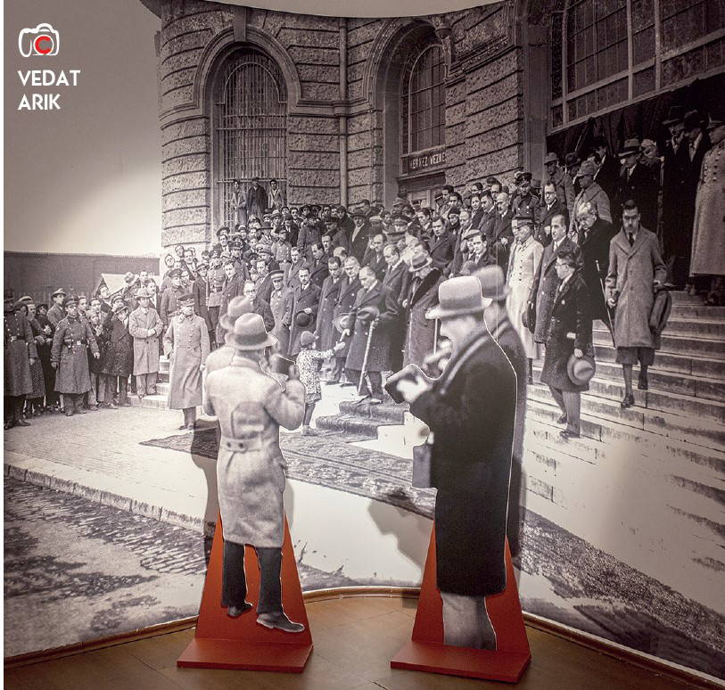 Son fotoğraf sergide olup kitapta olmayan bir fotoğraf. Cumhurbaşkanı Mustafa Kemal Ankara’dan trenle Haydarpaşa Garı’na geliyor. İstanbullular onu karşılamak için garda. Küçük bir kız Mustafa Kemal’e yaklaşıp ona bir mektup veriyor. Bu anı Cumhuriyet Gazetesi foto muhabiri Namık Görgüç görüntülerken iki meslektaşı Hilmi Şahenk ve Faik Şenol da kadraja giriyor.