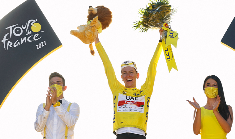 Sarı mayoyu 8. etaptan itibaren giyerek bir daha çıkarmayan 22 yaşındaki sporcu, üst üste ikinci kez Fransa Bisiklet Turu'nda zirveye çıkarak önemli bir başarıya imza attı. Pogacar, sarının yanı sıra kırmızı benekli (dağların kralı) ve beyaz (en iyi genç bisikletçi) mayoların da sahibi oldu.