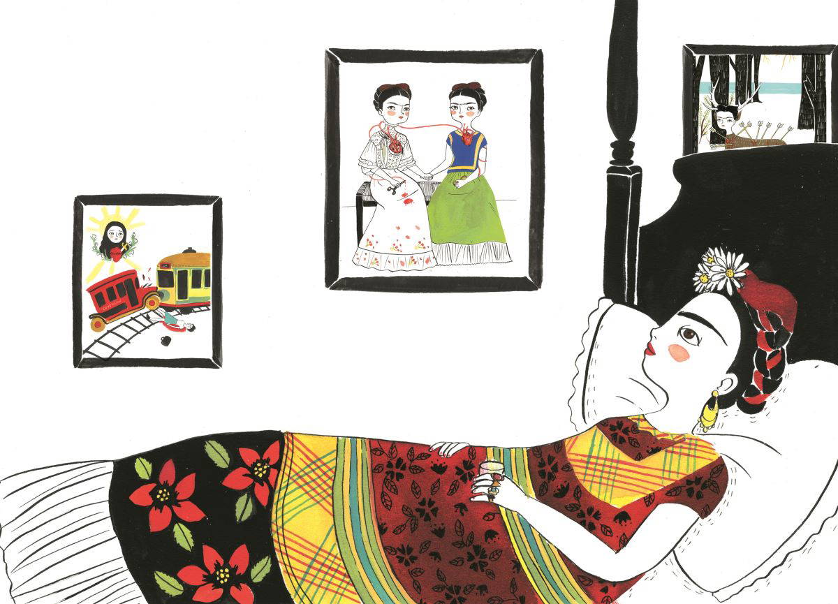 47 yaşında yaşama veda eden, ardında yapıtları, röportajları, mektupları, günlüğüyle yaşamı hakkında pek çok kayıt bırakan bu demir yürekli kadının izini, Frida Kahlo adlı kitabında (A7 Kutap) yapıtlarıyla sürüyor illüstratör Maria Hesse.