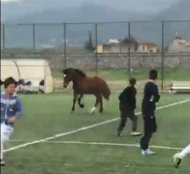 At, çocukların korkuyla kaçışmasına ve maçın durmasına neden oldu. Atın görevlilerin uzun uğraşlarıyla sahadan çıkarılmasıyla maç kaldığı yerden devam etti. Yaşanan ilginç olay ise bir veli tarafından kaydedilerek sosyal medyada paylaşıldı.