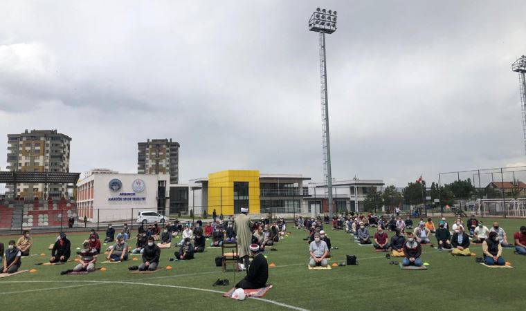 Korona virüs salgını tedbirleri kapsamında Argıncık Stadı çimleri üzerinde Cuma Namazı kılındı.