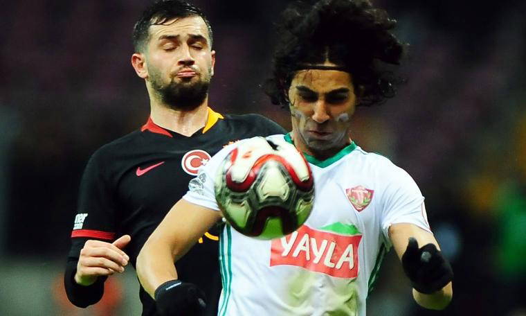 Galatasaraylı futbolcu Muğdat Çelik, Hatayspor savunmasının hatasında boş kaleye topu gönderemedi.