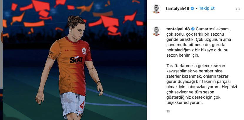 Bu sezon Süper Lig’i 84 puanla ikinci sırada tamamlayan Galatasaray’ın orta saha oyuncusu Taylan Antalyalı, sosyal medya hesabından yayınladığı mesajla taraftarlara teşekkür etti.