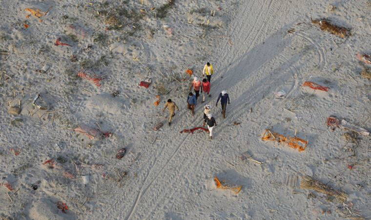 Hindistan’da polis, sığ kum mezarlarına gömülü halde bulunan ve Ganj Nehri kıyılarına vuran cansız bedenleri araştırıyor. Söz konusu ölü bedenlerin koronavirüs kurbanlarına ait olabileceğine inanılıyor.