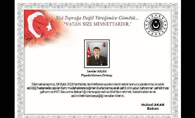 Şehit Aslan’ın belirlenecek tarihte düzenlenecek törenin ardından defnedileceği öğrenildi.