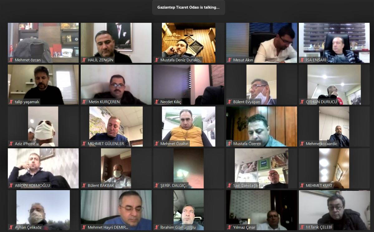 Gaziantep Ticaret Odasının (GTO) aralık ayı olağan meclis toplantısı Meclis Başkanı M. Hilmi Teymur başkanlığında, Yönetim Kurulu, Meclis ve Disiplin Kurulu üyelerinin katılımıyla video konferans yöntemiyle gerçekleştirildi.