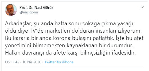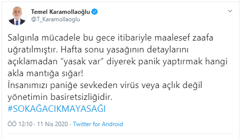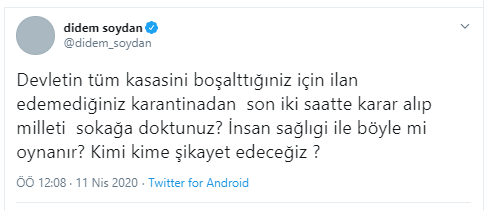 Bunun üzerine sosyal medya üzerinden hükümetin sokağa çıkma yasağı ilan ettiği saat ve yurttaşların karar sonrası marketlere giderek salgının yayılması ihtimalini artırması tepki konusu oldu.