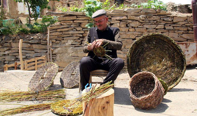 Yüksekova'ya 30 kilometre uzaklıktaki Salkımlı köyünde yaşayan Alihan Sığmaz, sepet öperek geçimini sağlıyor.