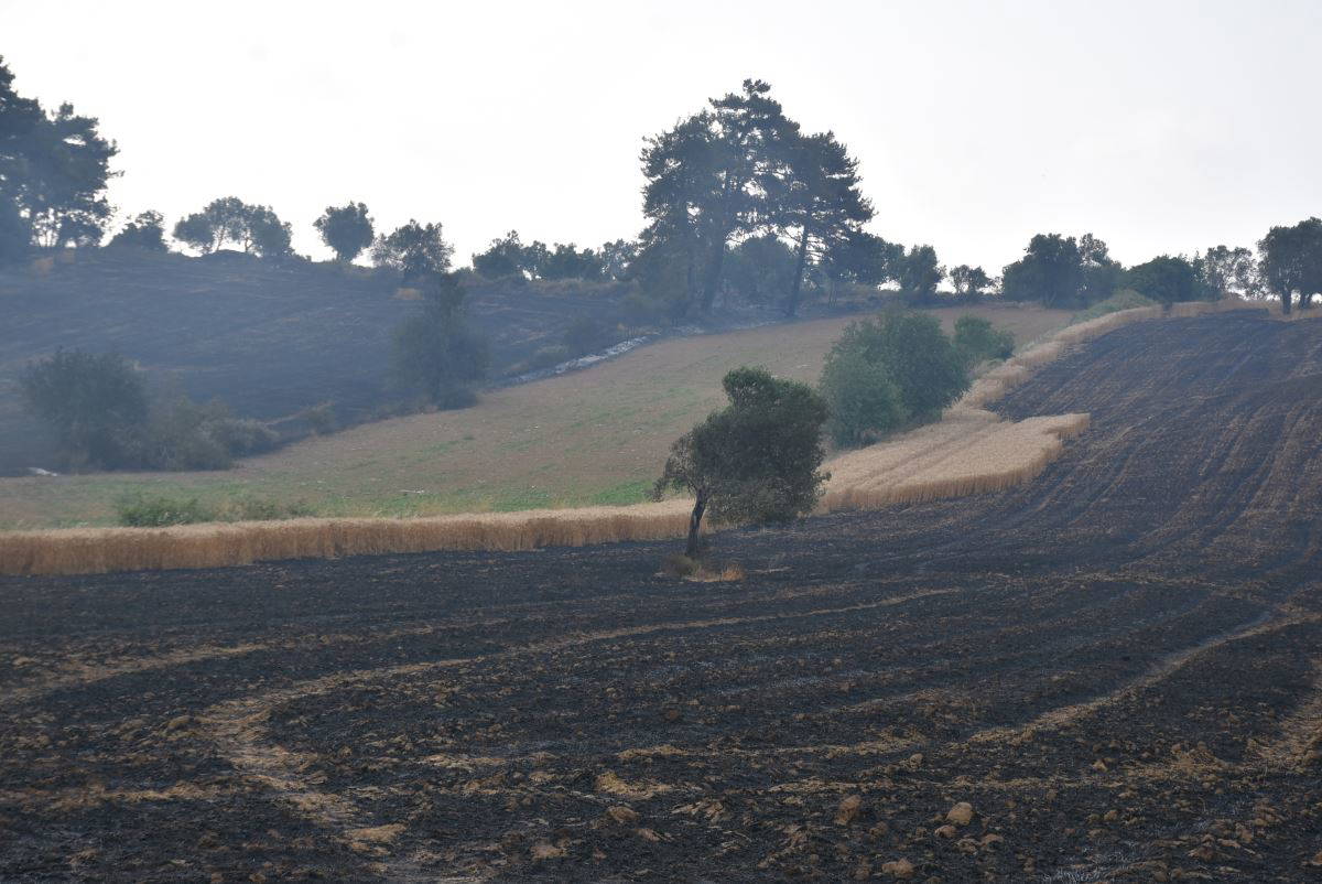 Kumköy'de, yangında buğday tarlasının yandığını gözyaşı dökerek anlatan Fatma Gülen, "Yangın buğday tarlamızı yaktı, çok üzgünüm. Çok kötü oldu. Yapacak bir şey yok. Yanan tarlamızın sigortası da yoktu. Allah'a şükür canımıza bir şey olmadı. Buğday tarlamızdan rekor verim bekliyorduk. Emeklerimize yazık oldu" dedi.